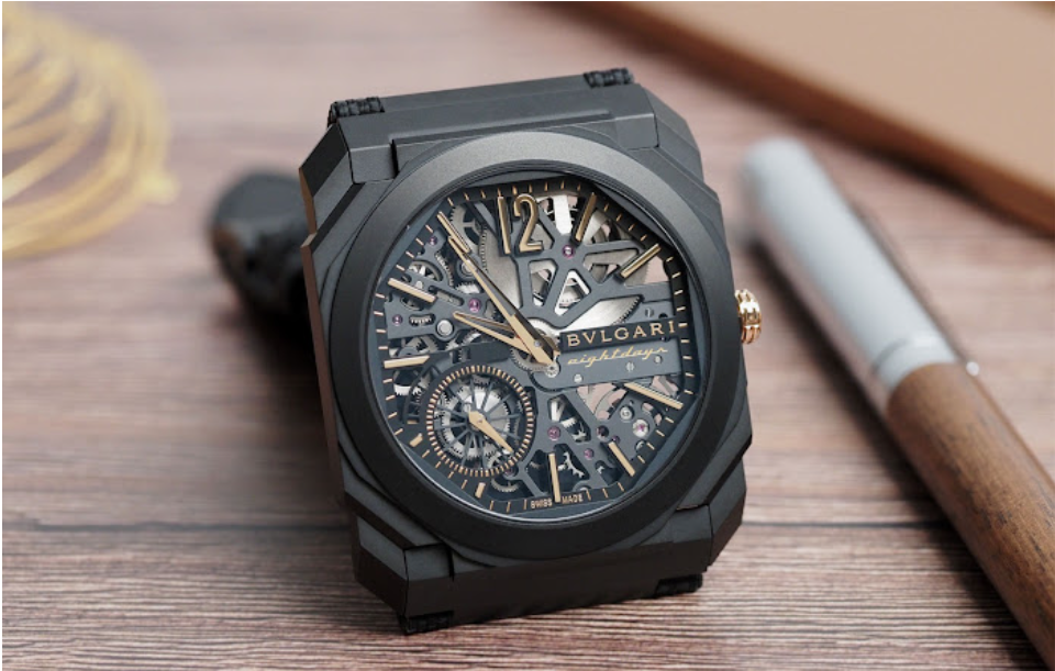 The Bulgari Octo Finissimo Skeleton 8 Days (Ref. 104121), with its ultra-thin skeleton design and black DLC titanium case, perfectly…